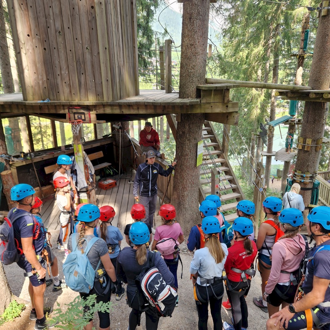 Neben der täglichen Einheit auf der Rollerstrecke standen Imitation, Koordination, Reaktion, Kraft und Schnelligkeit am Trainingsplan. Ein Highlight für alle Teilnehmenden war der Besuch des Hochseilgartens. Dort konnte, getarnt durch Spaß und Abwechslung, die Kraftausdauer sowie die Koordination in luftiger Höhe super trainiert werden.
