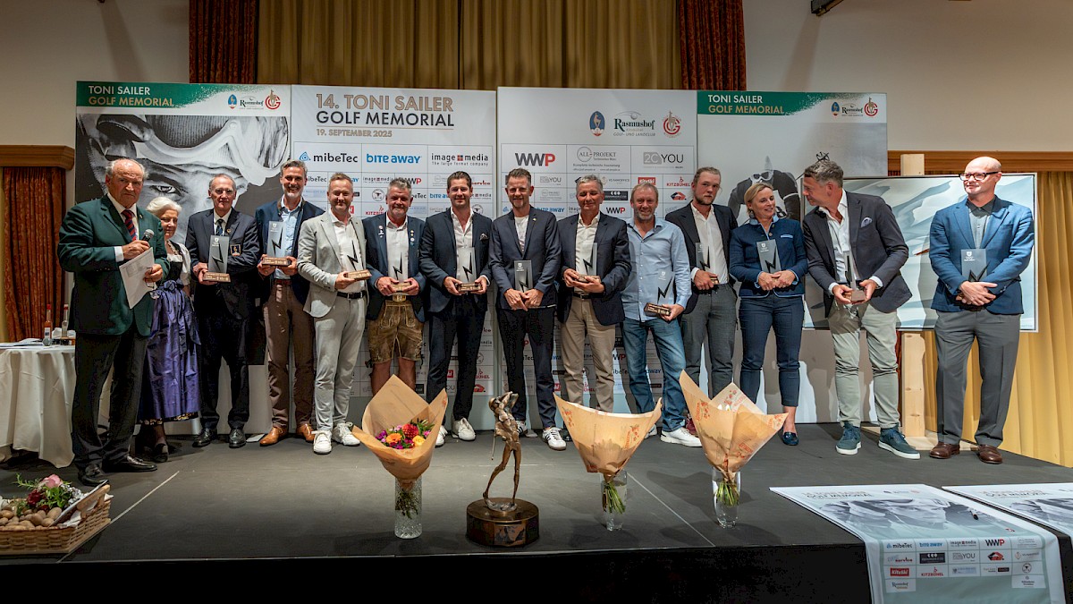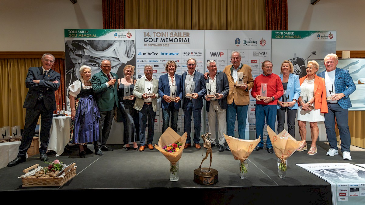 Das Einladungsturnier in Erinnerung an Österreichs Jahrhundertsportler ging heuer in seine 14. Auflage und gekommen waren Freunde, Weggefährten, Kollegen und Toni Sailers Familie – angeführt von Sohn Florian. 48. Flights bzw. rund 200 Teilnehmerinnen und Teilnehmer stellten sich dem 4er-Scramble auf den Plätzen der Golfclubs Kitzbühel und Rasmushof – im sportlichen Wettkampf freundschaftlich miteinander verbunden und in Gedanken bei Toni Sailer, der am 17. November 2025 seinen 90. Geburtstag gefeiert hätte. Für die einen ist es eine „schöne Verpflichtung“ (Franz Klammer) beim Toni Sailer Golf Memorial (TSGM) dabei sein zu dürfen, für die anderen eine Ehre. „Der Franz“ fehlt bei keinem TSGM und noch heute zeigt sich der Kärntner dem „Schwarzen Blitz“ gegenüber dankbar: „Toni war mein Mentor und er hat mir völlig uneigennützig so viel beigebracht“, sagt Franz Klammer. Leonhard Stock teilt mit Toni Sailer die Gemeinsamkeit des Olympiasieges in jungen Jahren und erinnert sich gerne an sein „zuvorkommendes und freundliches Wesen“. Der Zillertaler war 2009 auch einer der Sargträger. Mitgespielt haben u.a. auch Neffe Rudi Sailer junior mit Frau Maria und Sohn Nico, Harti Weirather, Hanni Weirather-Wenzel, Hansi Hinterseer, Paul Accola, Walter Vesti, Jimmy Steiner, Niki Zitny, Robert Trenkwalder, Josef Chodakowsky (Präsident des Skiclubs Arlberg), zum ersten Mal der ehemalige Tennisprofi Stefan Koubek und viele langjährige Freunde und Kollegen vom Kitzbüheler Ski Club sowie des Golfclubs Kitzbühel (dessen Präsident Toni Sailer war).