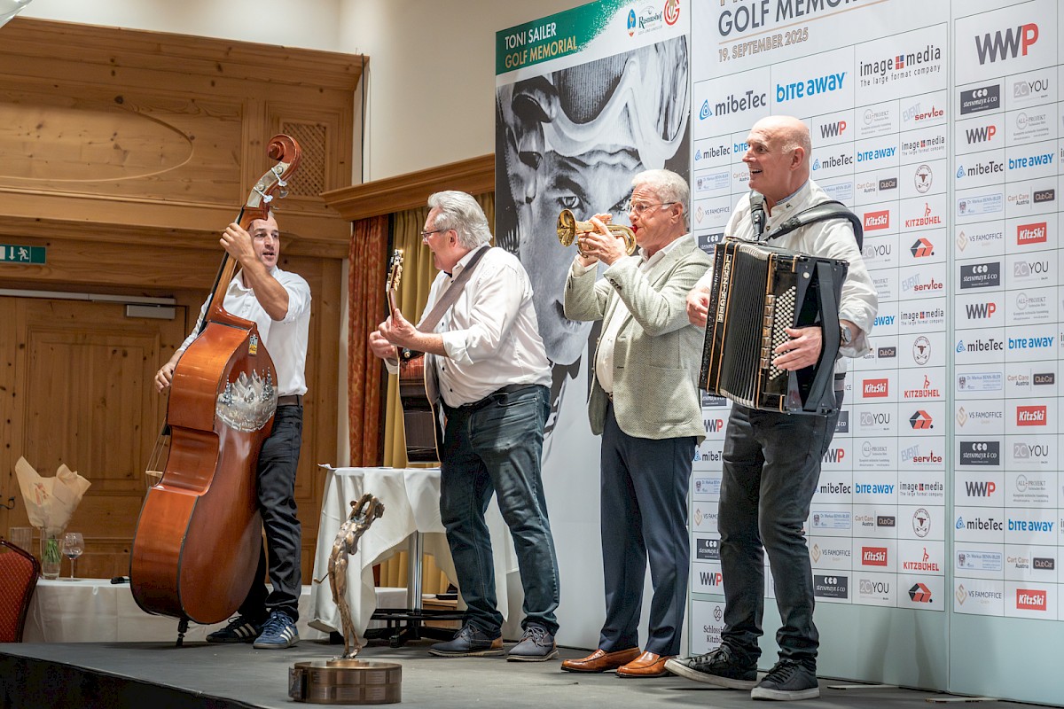 Viel Applaus gab es nicht nur für das Fazit, sondern auch für die spontanen Worte von Hansi Hinterseer. Der bis heute letzte Kitzbüheler Slalomsieger auf dem Ganslernhang gewann mit seinem Flight die Wertung Brutto B. Auf der Bühne erinnerte er sich mit herzlichen Worten an die vielen Jahre mit Toni Sailer, mit dem er schon als Bub vor der Kamera stand: „Was Toni in und für Kitzbühel bewegt hat, ist unglaublich und einmalig. Ich bin glücklich, ihn kennengelernt zu haben, und er war immer ein Vorbild. Schön, dass wir ihn alle auch dank dieses Turniers in Erinnerung behalten.“