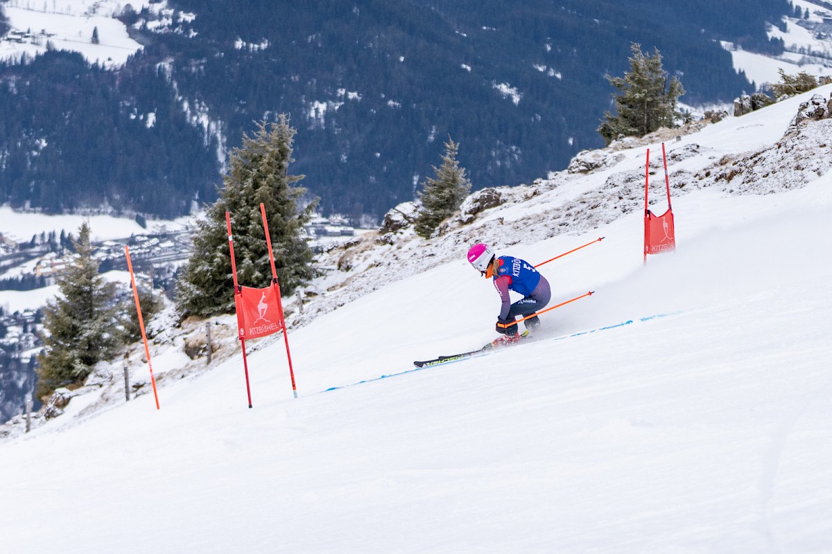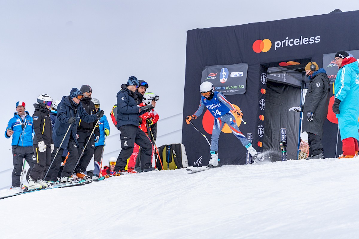 32 Tore lang war der Super-G, und alle Beteiligten mussten ihr bestes Skifahren zeigen, denn die Strecke ist alles andere als einfach. Es gibt kein klassisches Gleitstück zum Verschnaufen, dafür ständiges Gefälle, garniert mit vielen Übergängen, die höchste Konzentration verlangen. Nicht umsonst schufen der Kitzbüheler Ski Club gemeinsam mit der Bergbahn Kitzbühel 2025 eine neue Trainingsstrecke, die in den vergangenen Wochen bereits eifrig von Weltcup- und Europacupathleten getestet wurde. Nach bestandener Feuertaufe weihen die Virtus Open Alpine Ski die „schnelle Brunelle“ nun auch offiziell mit internationalen Rennen ein.