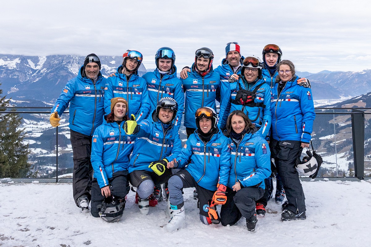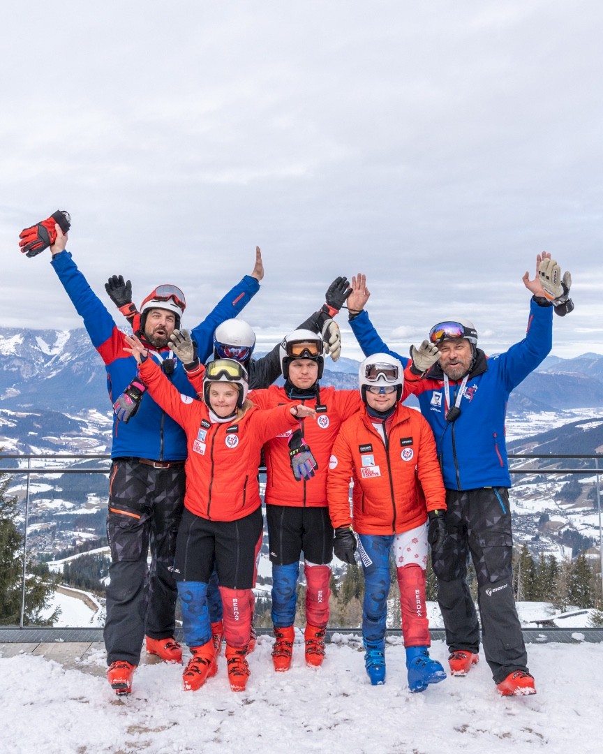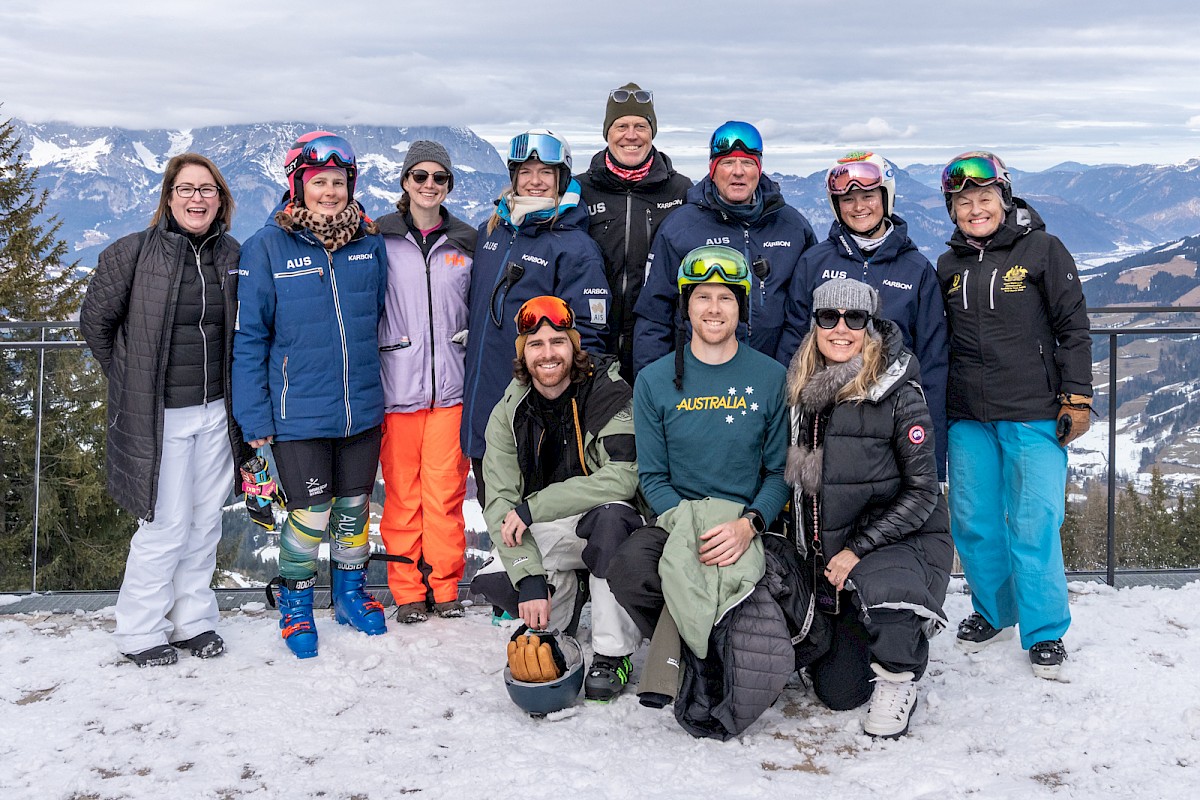 Für riesige Begeisterung sorgte die großzügige Terrasse direkt über dem Start, von der aus sich ein Blick vom Wilden Kaiser über das Kitzbüheler Horn bis hin zu den Südbergen eröffnet. Ein unvergessliches Panorama für die Virtus-Sportlerinnen und -Sportler aus acht Nationen, darunter Australien und die USA. Das malerische Plätzchen diente umgehend als Kulisse für Teamfotos, wobei vor allem das Shooting der italienischen Mannschaft für mitreißende Stimmung sorgte: Die gesamte Gruppe stimmte „Il Canto degli Italiani“, besser bekannt als „Fratelli d’Italia“, die italienische Nationalhymne, an.